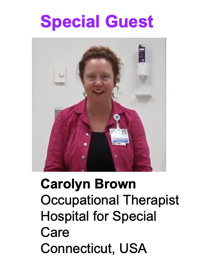 We will be joined this week by our special guest, Dr. Carolyn Brown, OTR/L, CLT, Occupational Therapist in the Outpatient Center at the Hospital for Special Care in Connecticut.
